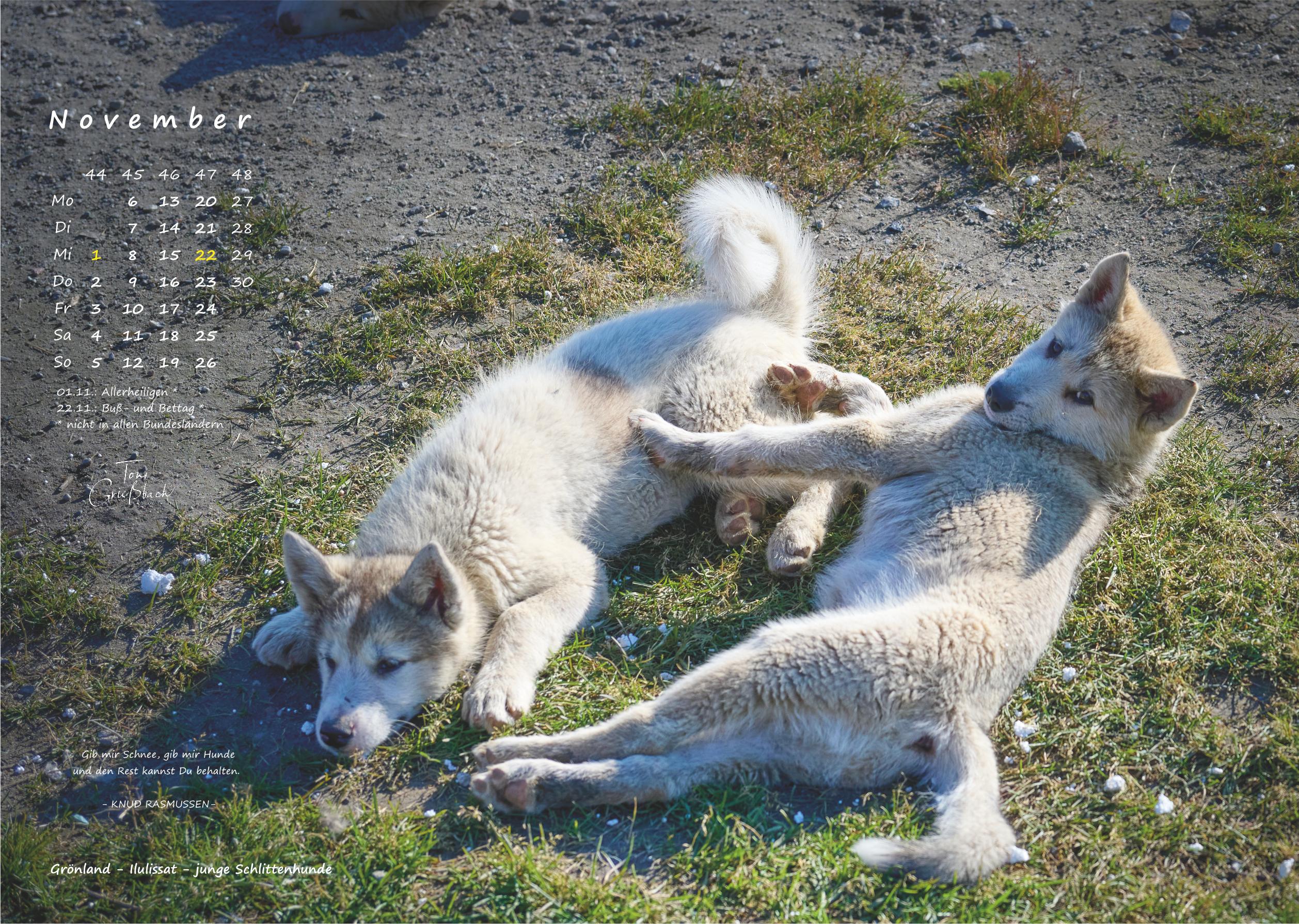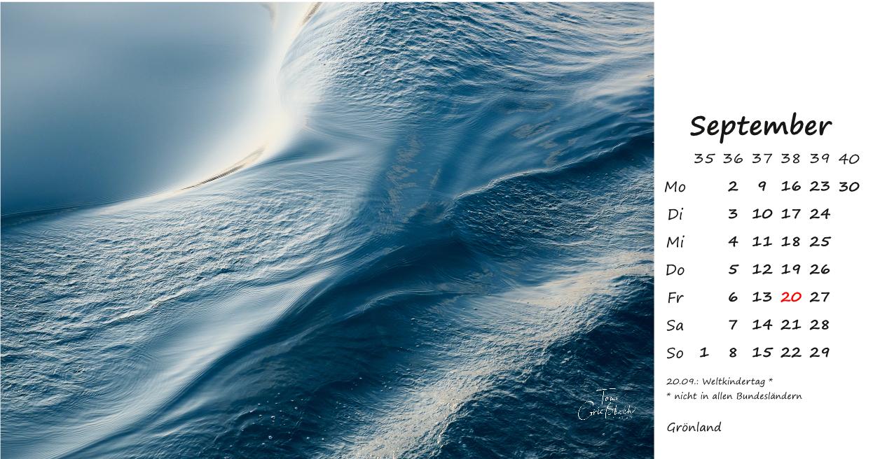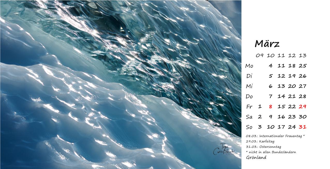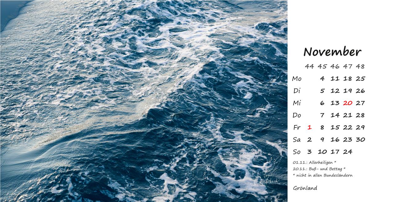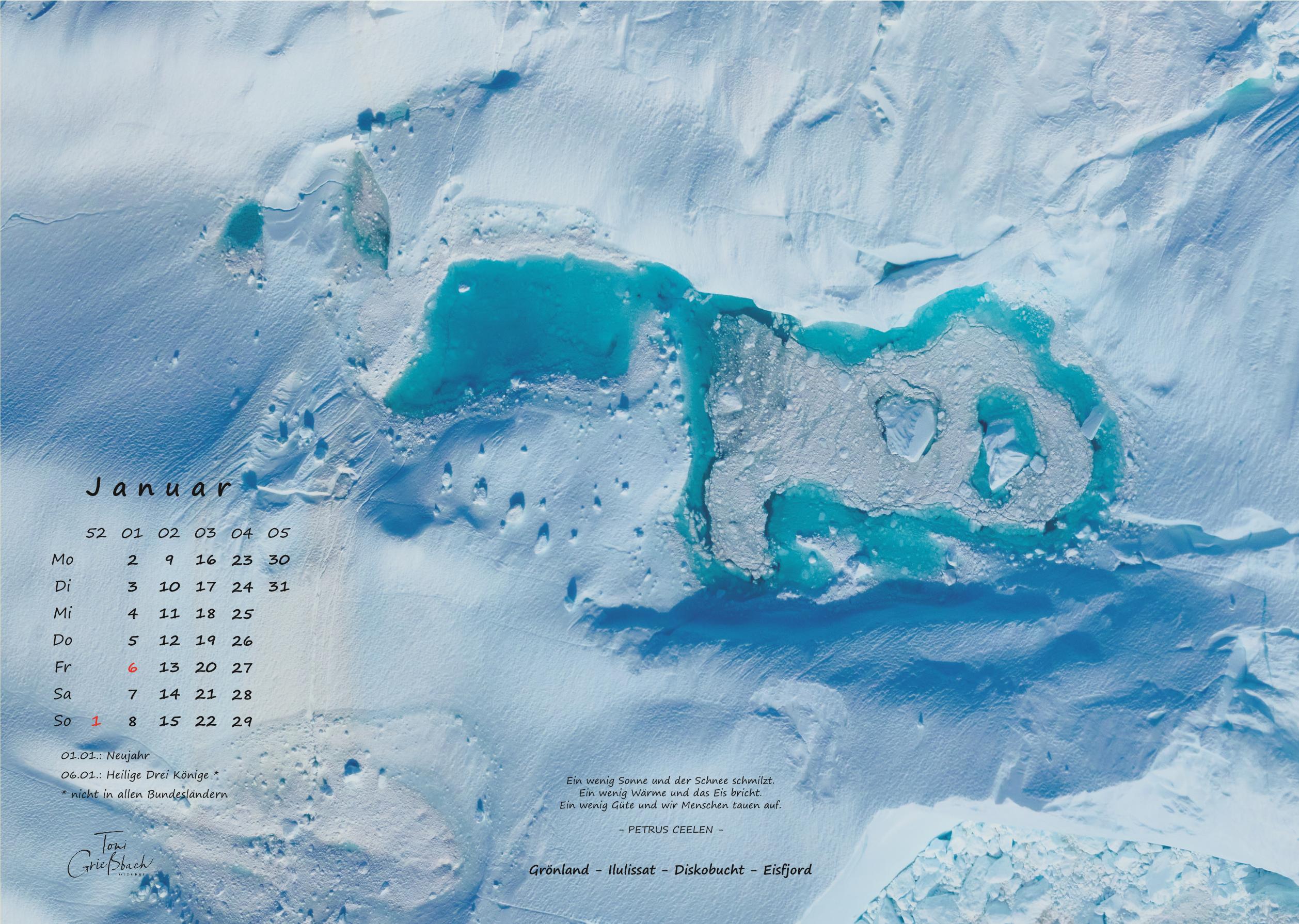 Der Bildkalender im Format 30cm x 42cm, in hochwertigem Druck zeigt Fotos aus Grönland, 12 Monate mit beeindruckenden Landschaften, Menschen und Naturaufnahmen.