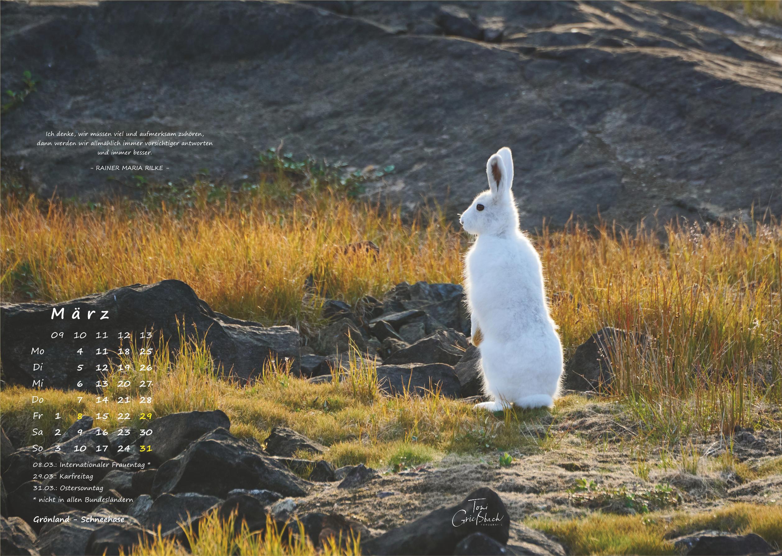 Die Welt im Norden ist für 12 Monate das Motto, mit Fotos von Landschaften und aus der Tierwelt. Sehen Sie selbst in der Vorschau hier.